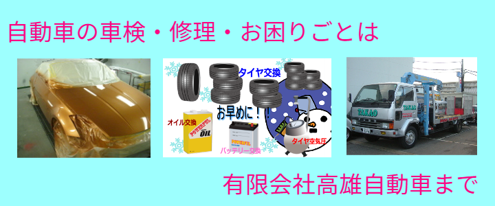 高雄自動車は、大切なお車の修理・鈑金塗装・車検・整備・自動車保険・24時間対応のロードサービスで皆様のカーライフをサポートします